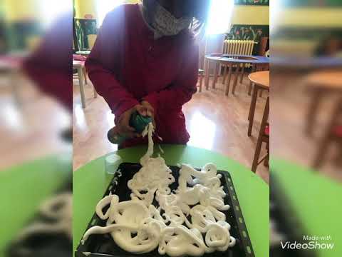 Ebru is an art of decoration made by passing patterns created with specially prepared paints on paper, on water concentrated with tragacanth. We applied the art of marbling with shaving foam and diluted finger paint.